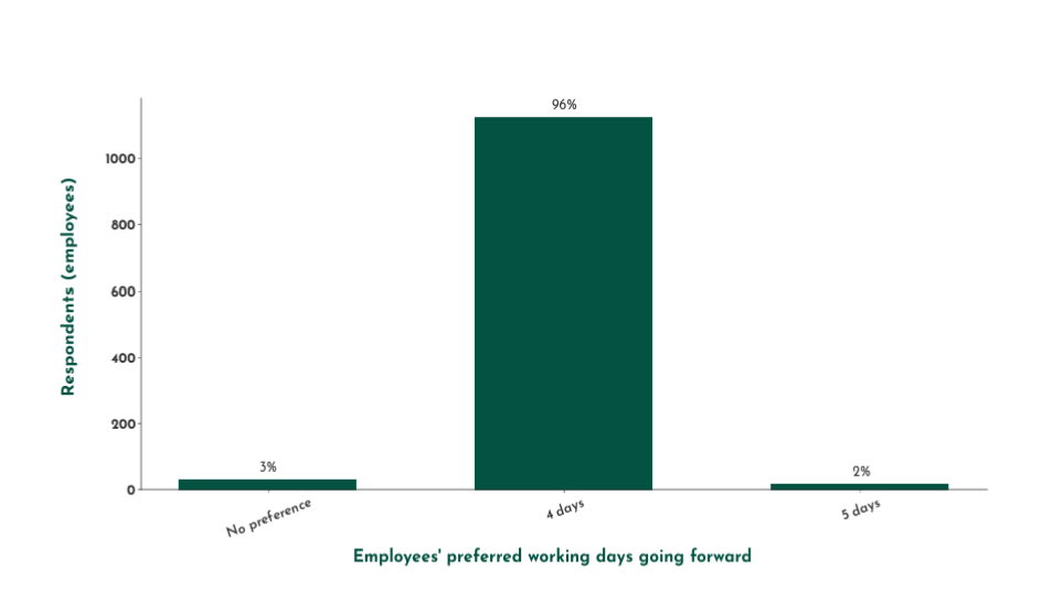 Key takeaway: Give employees more control over their time. Offer remote work, flexible schedules, or compressed workweeks.